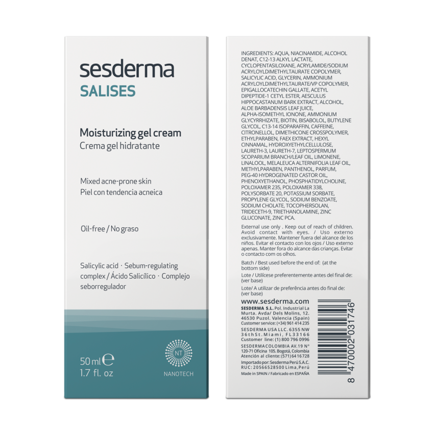 Sesderma Salises – Многофункциональный уход для жирной кожи, склонной к акне. Профессиональная косметика против прыщей.